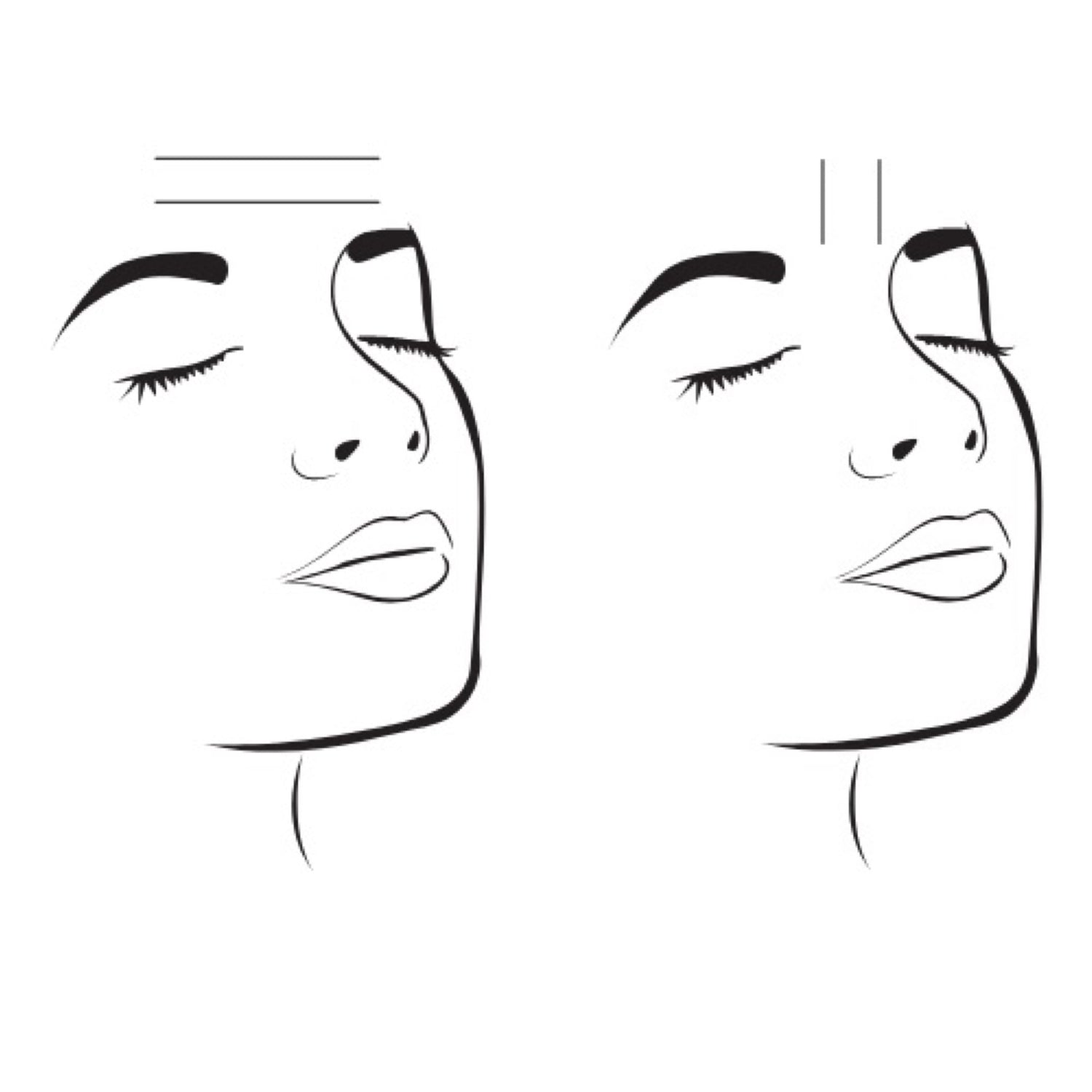 Anti-wrinkle injections applied to the frown lines ('Eleven') between the eyebrows and the horizontal lines ('Forehead') across the forehead.